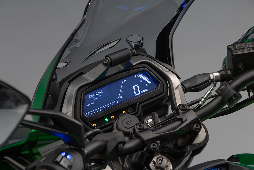 Clareza noturna aprimorada com o console duplo de LCD reverso com indicador de marcha e RPM. Sinta-se como um piloto!