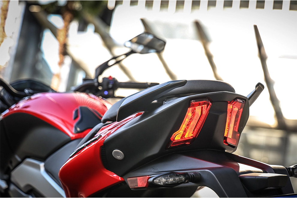 Motor de duplo comando de válvulas, refrigerado a líquido e injeção eletrônica, oferece potência máxima de 27 cv a 8500 RPM e Torque máximo de 2,39 Kgf.m.